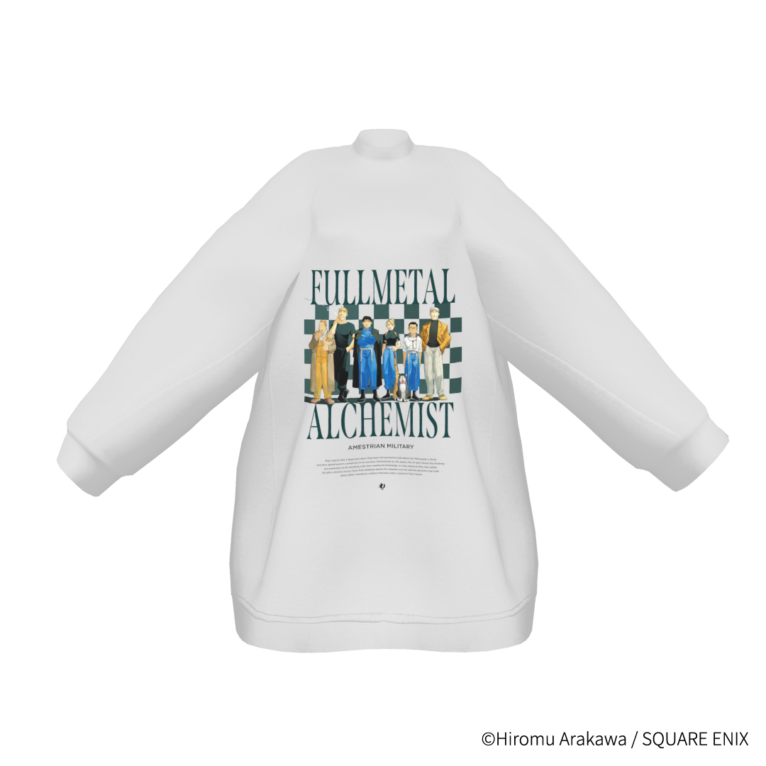 『鋼の錬金術師』とのVRChat対応向け公式コラボファッションアイテム第一弾・第二弾としては、「エドワード・エルリック」、「ロイ・マスタング」、「リザ・ホークアイ」の衣裳を忠実に再現したアイテムや、錬金術のギミックを販売してまいりました。第三弾はこれまでの原作に忠実なアイテムとは異なり、リアルクローズの形式を取り日常的にファッションを楽しんでいただけるアイテム群となっております。これまでのシリーズと併せて様々な切り口で作品の世界観を楽しんでいただくことを企図しております。